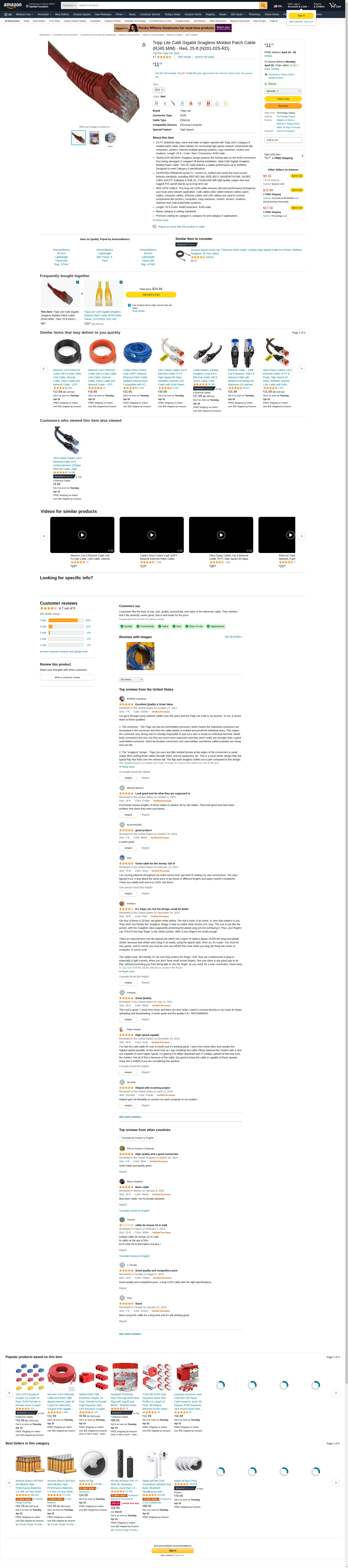| Feature | "25 FT: Distribute data, voice and video at higher speeds with Tripp Lite's Category 6 molded patch cable. Ideal solution for connecting high-speed network components like computers, printers, Internet-enabled gaming systems, copy machines, routers and modems. Length: 25 ft. / Color: Red / Connectors: RJ45 male" |