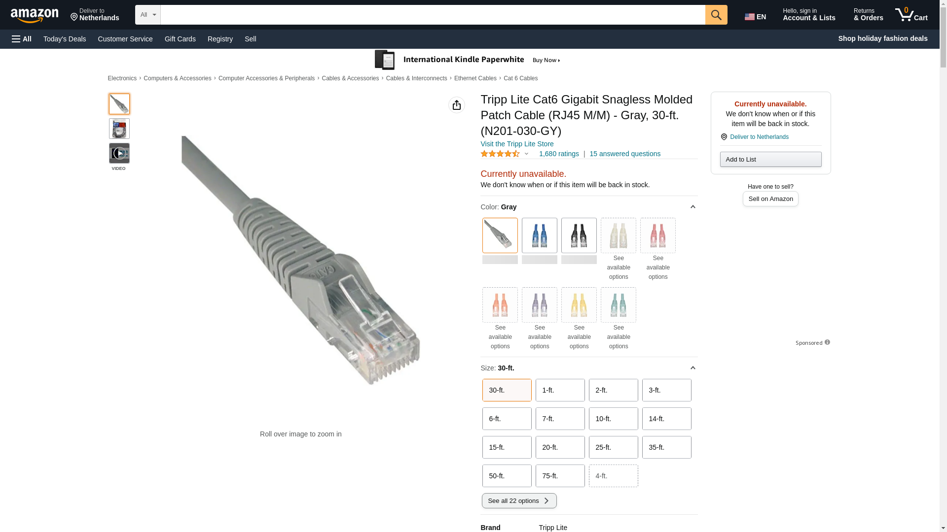 - 30 FT: Distribute data, voice and video at higher speeds with Tripp Lite’s Category 6 molded patch cable. Ideal solution for connecting high-speed network components like computers, printers, Internet-enabled gaming systems, copy machines, routers and modems. Length: 30 ft. / Color: Gray / Connectors: RJ45 male.