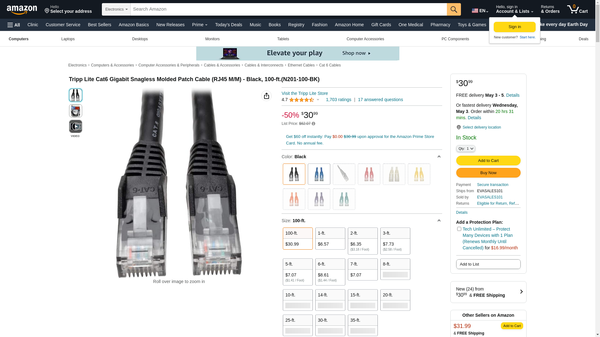| Feature | "100 FT. CAT6 CABLE: Distribute data, voice and video at higher speeds with Tripp Lite's Category 6 molded patch cable. Ideal solution for connecting high-speed network components like computers, printers, Internet-enabled gaming systems, copy machines, routers and modems. Length: 100 ft. / Color: Black / Connectors: RJ45 male." |