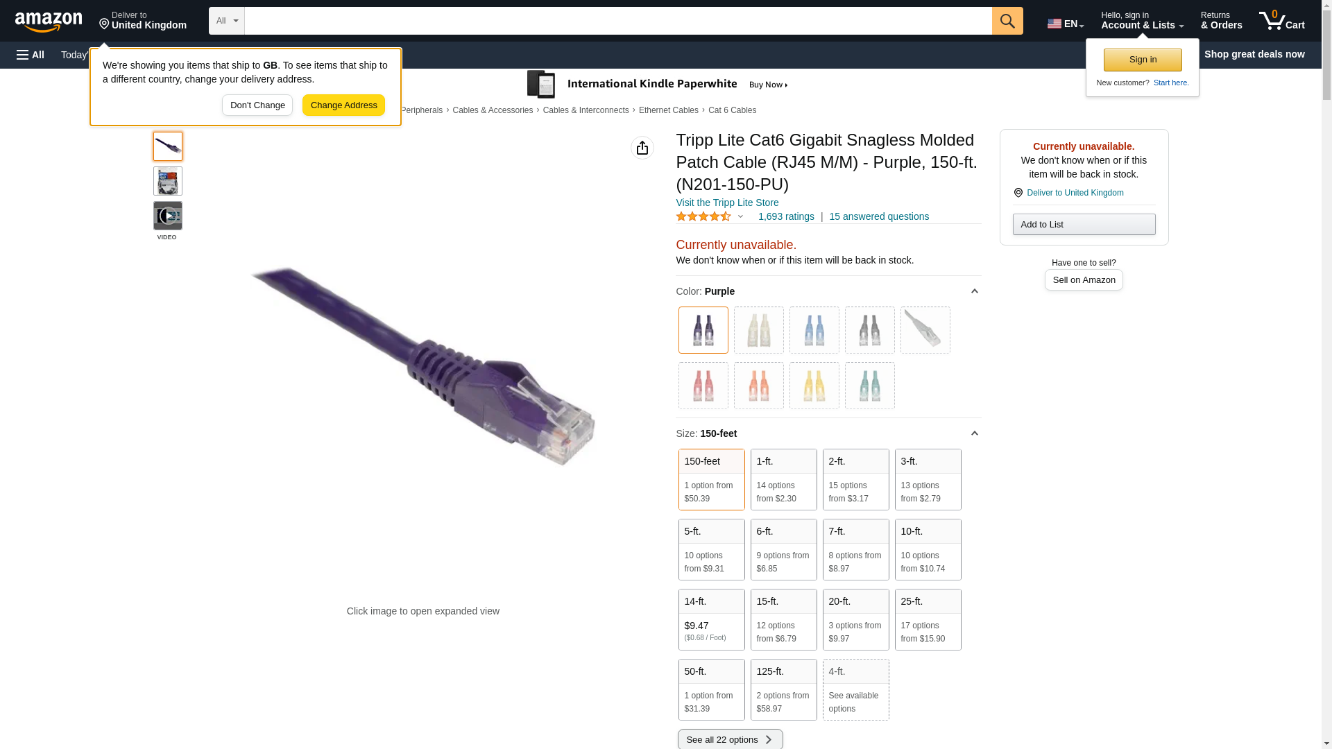 - Length: 150 feet./Color: Purple/Connectors: RJ45 male