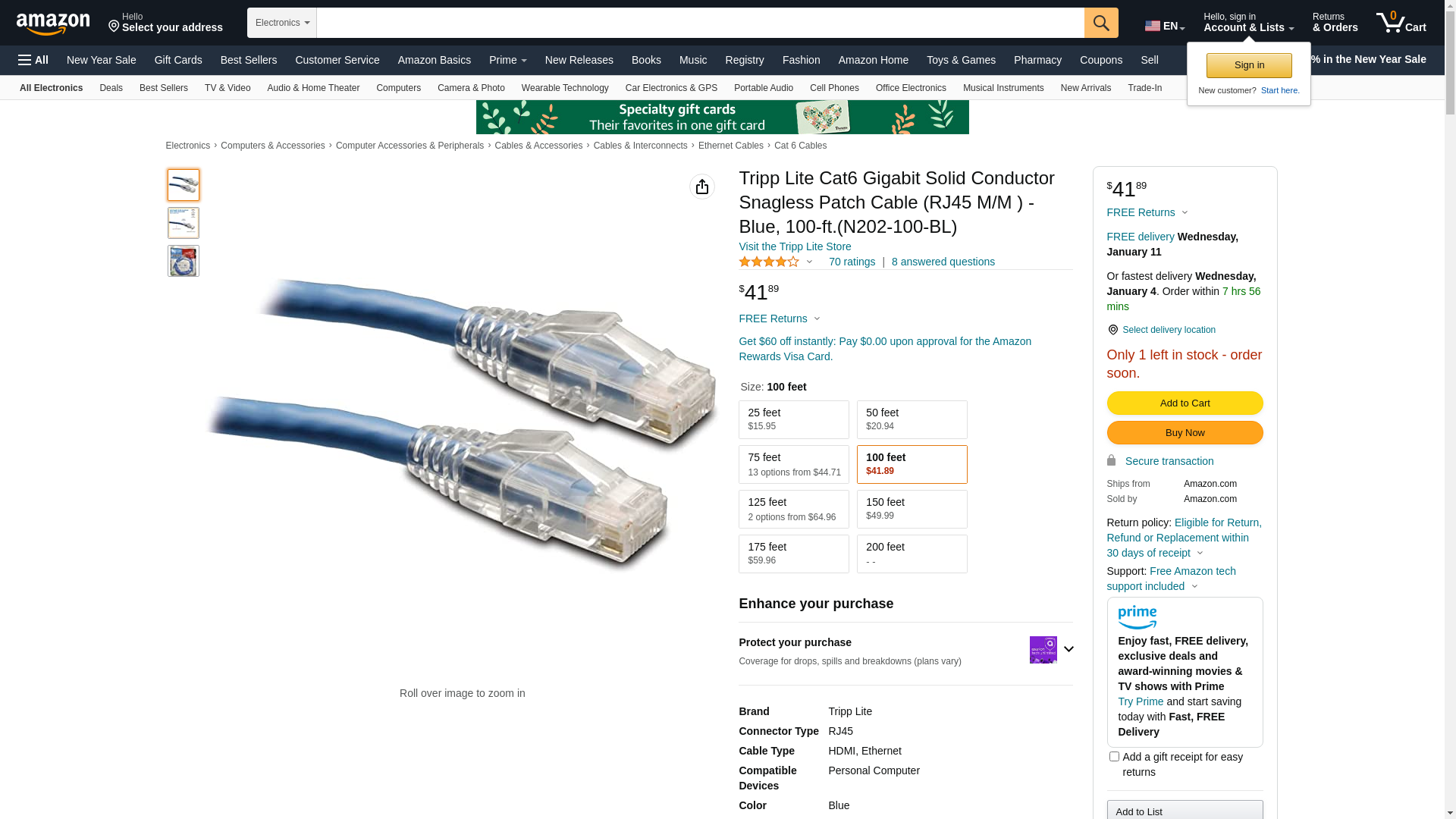 | Feature | 100 feet Blue Cat6 Solid Conductor patch cable |