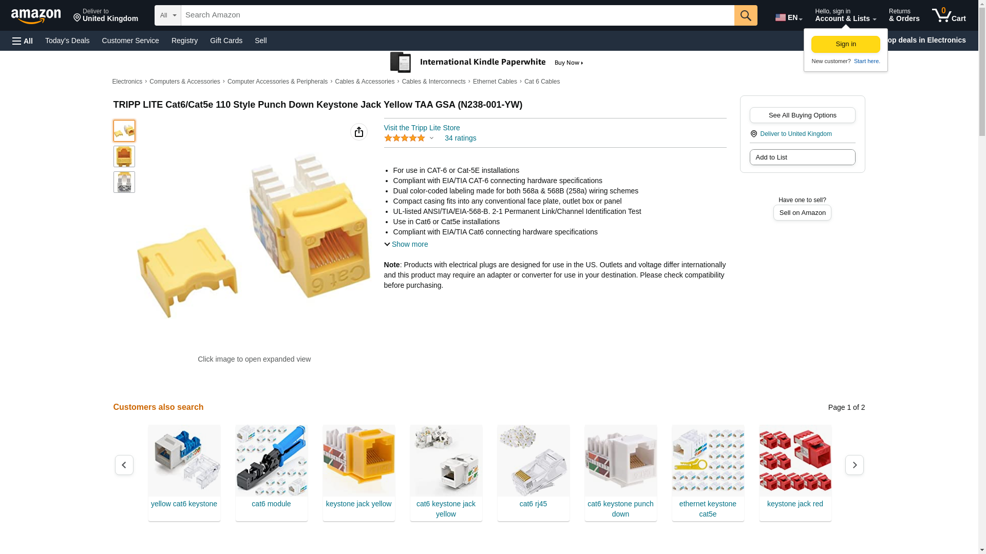 | Feature | Tripp Lite N238-001-Yw Cat-6/Cat-5E 110-Style Keystone Jack (Yellow) |