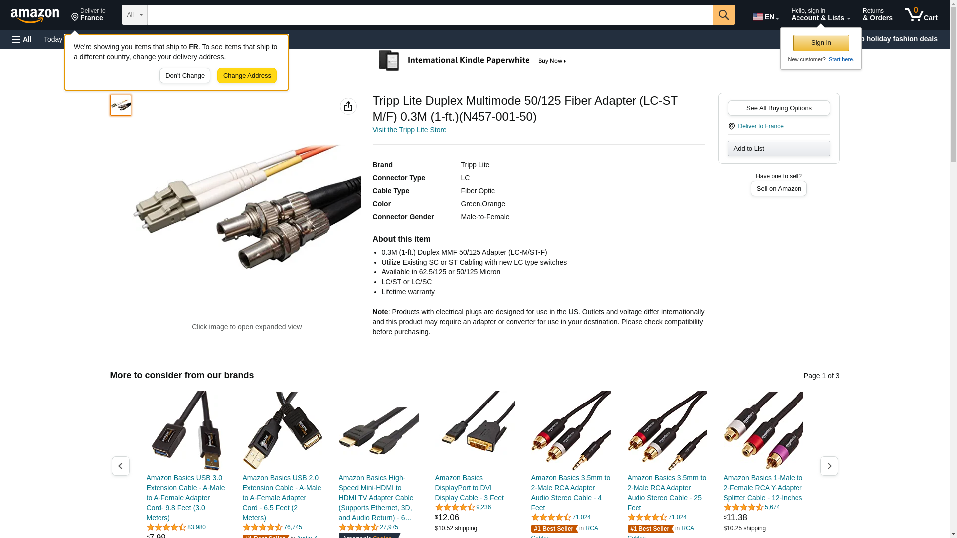 Buy Tripp Lite Duplex Multimode 50/125 Fiber Adapter (LC-ST M/F) 0.3M (1-ft.)(N457-001-50): Optical - Amazon.com ? FREE DELIVERY possible on eligible purchases