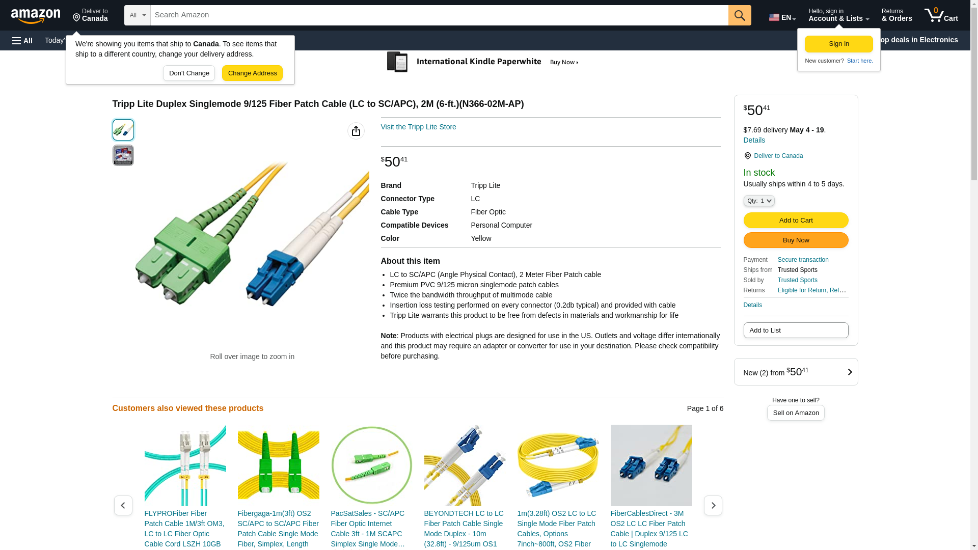 Tripp Lite Duplex Singlemode 9/125 Fiber Patch Cable (LC to SC/APC), 2M (6-ft.)(N366-02M-AP)