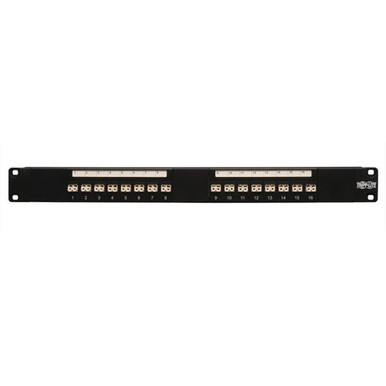 Brand Name: Tripp Lite<br /> Product Name: 16 Port Fiber Optic Patch Panel<br /> Marketing Information: <br /> Tripp Lites 16-Port 1U Rackmount LC/LC Fiber Optic Patch Panel provides efficient and easy management of fiber optic cables in the rack or cabinet. Pre-loaded, feed-thru duplex multimode connectors are mounted on a 16-gauge, cold rolled, black powder coated steel panel. Use with 62.5/125 or 50/125 multimode fiber patch cables. Panel measures 19" wide by 1.75" high. Tripp Lite Lifetime warranty.<br /> <br /> <br /> Product Type: Network Patch Panel<br /> Interfaces/Ports<br /> <br /> Interfaces/Ports: 16 x LC<br /> Miscellaneous<br /> <br /> Package Contents: <br /> 16 Port Fiber Optic Patch Panel<br /> 16 Port LC/LC Duplex Fiber Optic Patch Panel