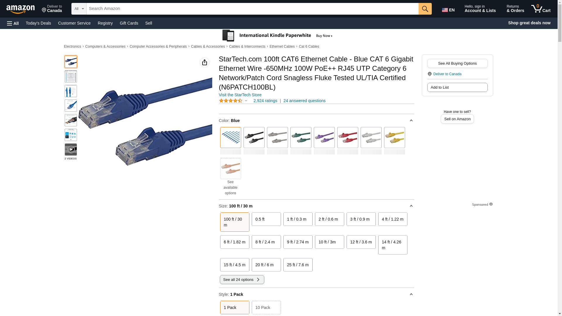Startech.com N6PATCH100BL 100 Blue Cat 6 UTP Pat