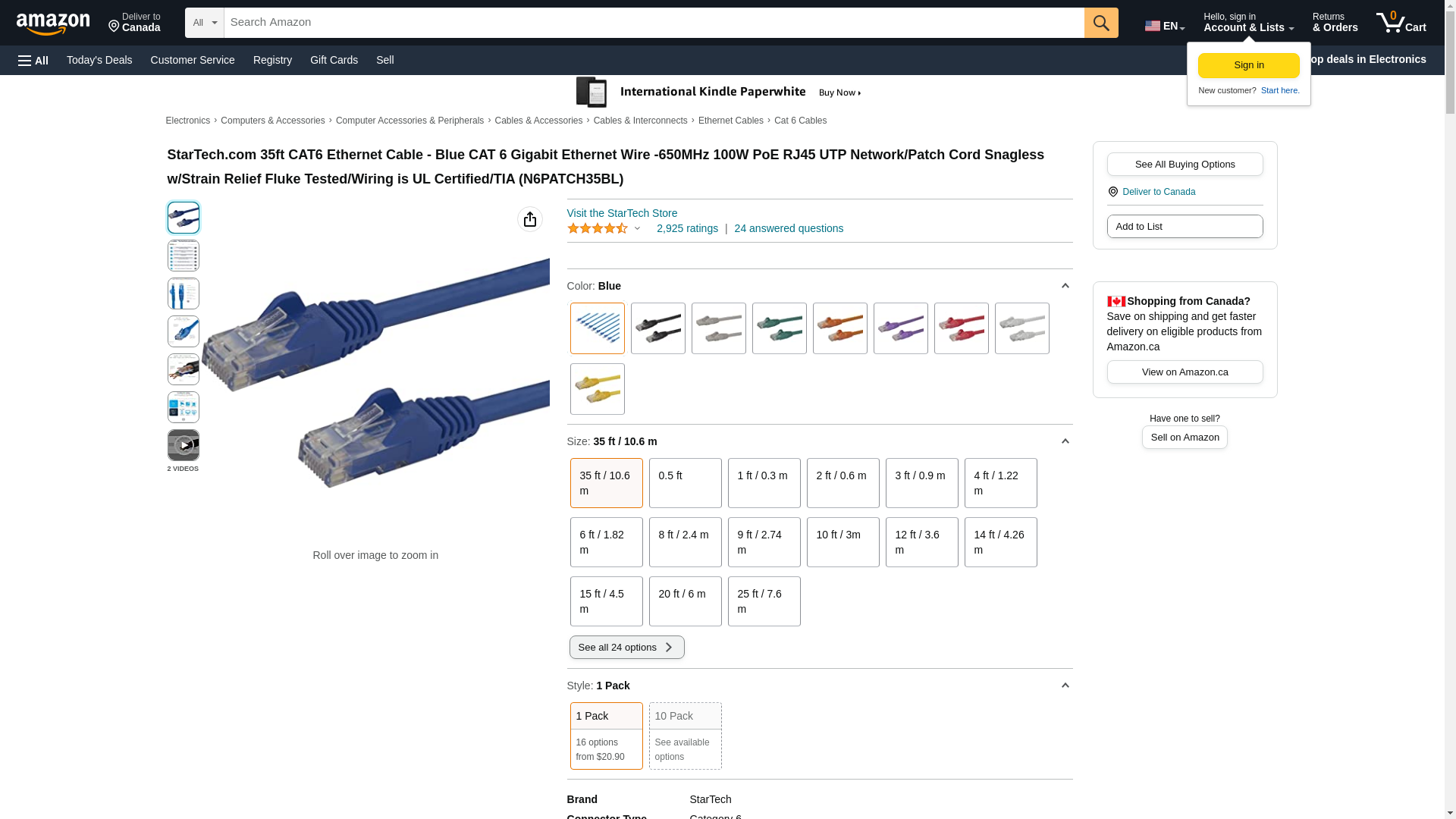 N6PATCH35BK 35' Blue UTP Cat 6 patch cable provides PoE capable gigabit network application. Snagless RJ45 connectors offers reliable connection. UTP Cat 6 Patch cable in blue color offers reliable signal routing in IT hardware of 500 MHz Ethernet networks. It is made of flexible as well as fire retardant PVC to ensure maximum bending and to prevent any fatal fire accident. The 35' cable has eight 24 AWG stranded conductors to transfer data at a high-speed through the Ethernet network equipments. Snagless design of the male-to-male connector protects RJ45 tab from damages such as wear and tear during installation. Gold-plated connectors prevent signal loss due to oxidation or corrosion. Twisted pair design of the cable conductors minimizes crosstalk and attenuation for clear signal transmission. Cat6 utp patch cable offers reliable signal routing. Easy-to-install 35' long cord. RJ-45 Male to RJ-45 Male connectors for reliable connection. Ultra flexible PVC jacket offers double shielding against outside noise. Constructed with top quality component minimizes crosstalk and interference. Comes in blue color for a new look.