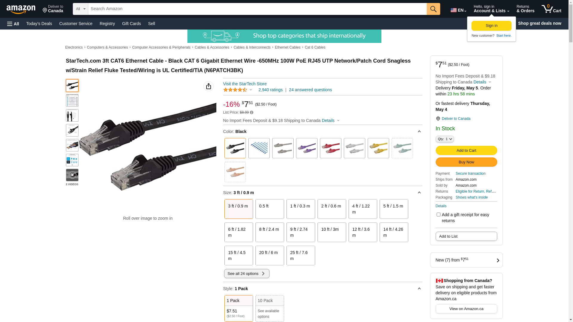 StarTech.'s Category 6 cables are the perfect way to connect your workspace's emerging gigabit works. Category 6 cables improve upon the Category 5e specification by providing twice the available bandwidth (up to 500Mhz) and a signal-to-noise margin improvement that is sixteen times (12dB) better than that provided by Cat 5e. All of StarTech.'s Cat 6 cables are constructed by our highly trained staff with only top quality ponents that ensure they meet StarTech.'s strict standards for reliability. Backed with a lifetime warranty these cables help StarTech. maintain our tradition of offering top-notch parts and products for the best price possible.Primary InformationLeft Connector Type : RJ-45 Left Connector Gender : Male Right Connector Type : RJ-45 Right Connector Gender : Male Network Cable Type : Patch Cable Dimensions&MiscellaneousLength : 3 feet Enclosure Color : Black Service&SupportService & Support Type : Lifetime warranty UNSPSC CodeUNSPSC Code : 39121702