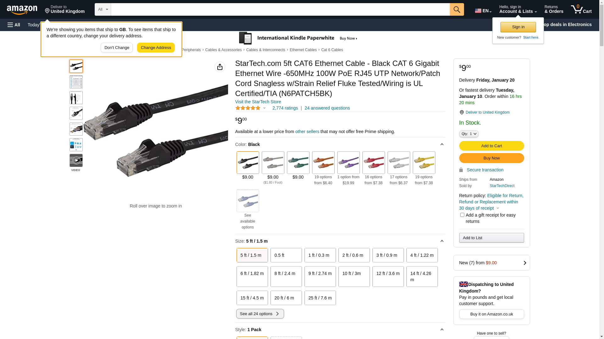 Buy Startech N6PATCH5BK As low as $5.25 in bulk In stock StarTech.com 5 ft Black Gigabit Snagless RJ45 UTP Cat6 Patch Cable - 5ft Patch Cord - 1 x RJ-45 Male