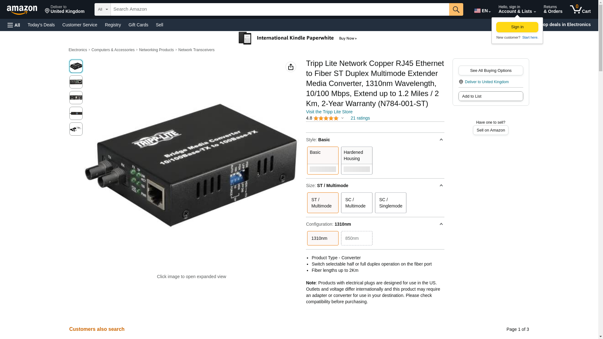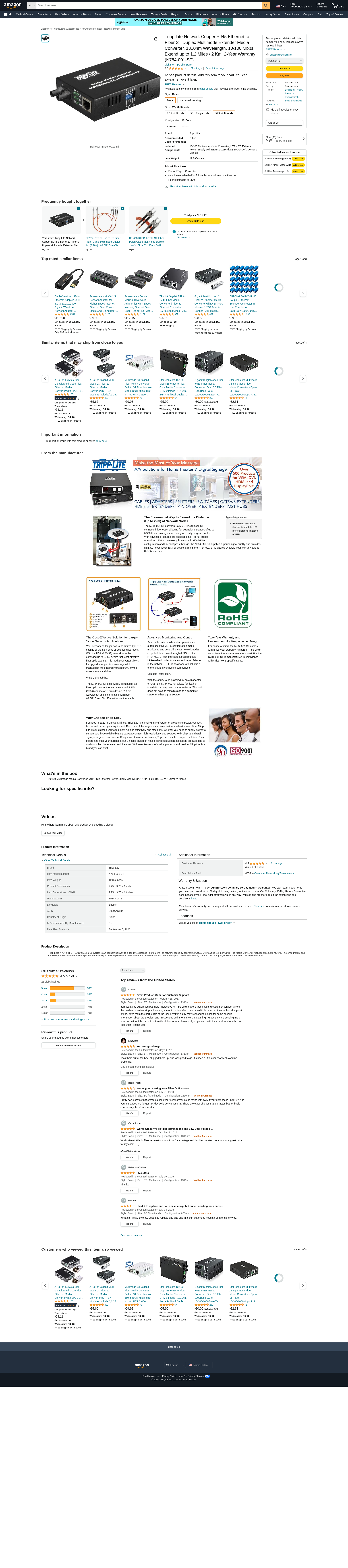Tripp lite 10/100baset to 100basefx-st converts utp ethe to fiber 10/100baset to 100basefx-st converts utp ethe to fiber