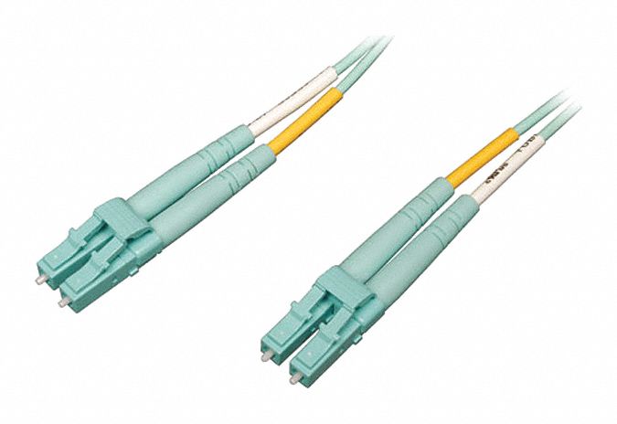 Patch cable with LC connector on first and second end. Features low-Smoke, Zero Halogen aqua jacket. IEEE 802.3ae cable offers high-bandwidth, low-cost solution. Use with VCSEL and LED laser light sources. High data transfer speeds up to 10 Gbps/40 Gbps/100 Gbps. Length: 16'. Comes with lifetime limited warranty.