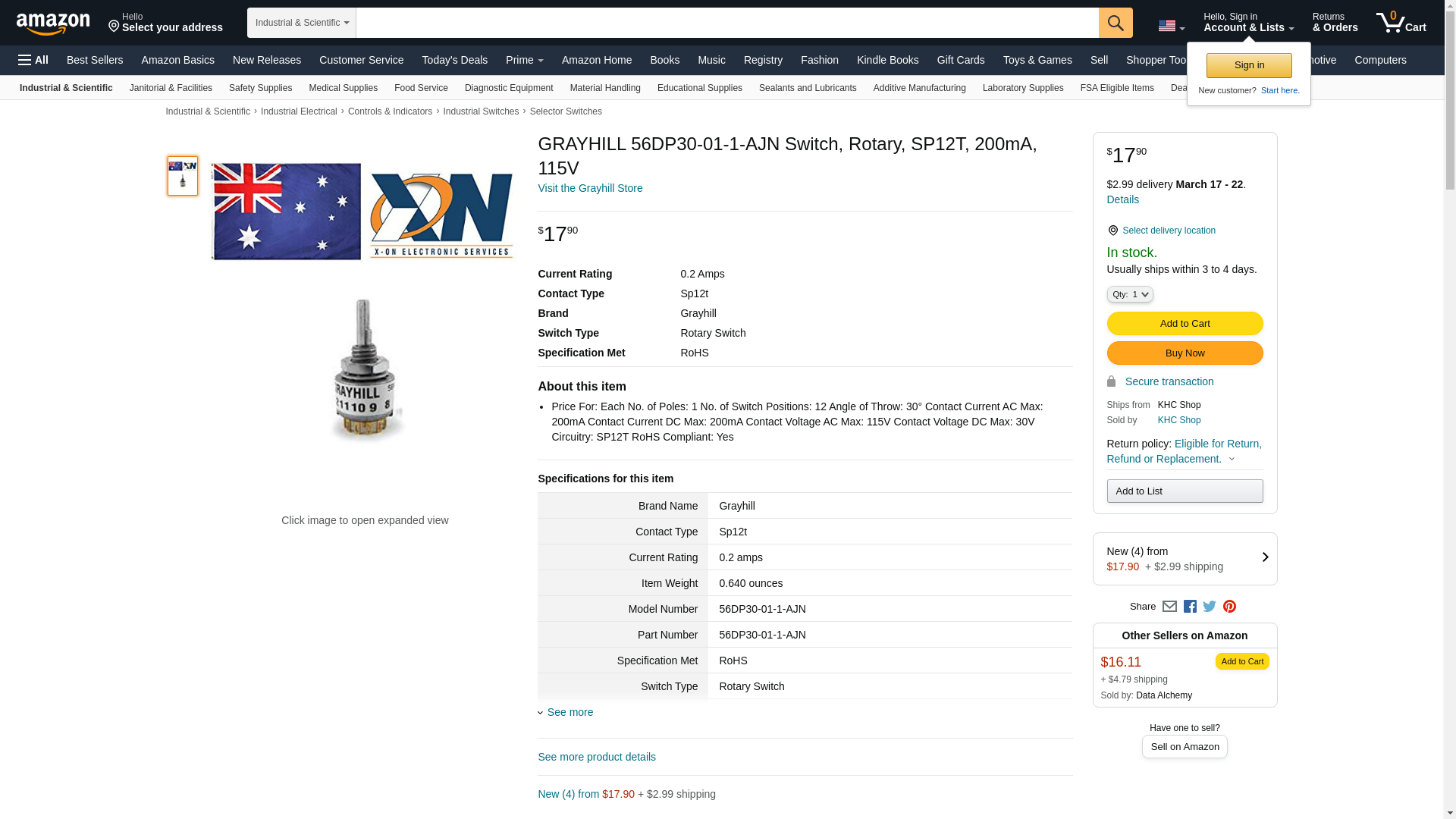 - Price For: Each No. of Poles: 1 No. of Switch Positions: 12 Angle of Throw: 30° Contact Current AC Max: 200mA Contact Current DC Max: 200mA Contact Voltage AC Max: 115V Contact Voltage DC Max: 30V Circuitry: SP12T RoHS Compliant: Yes