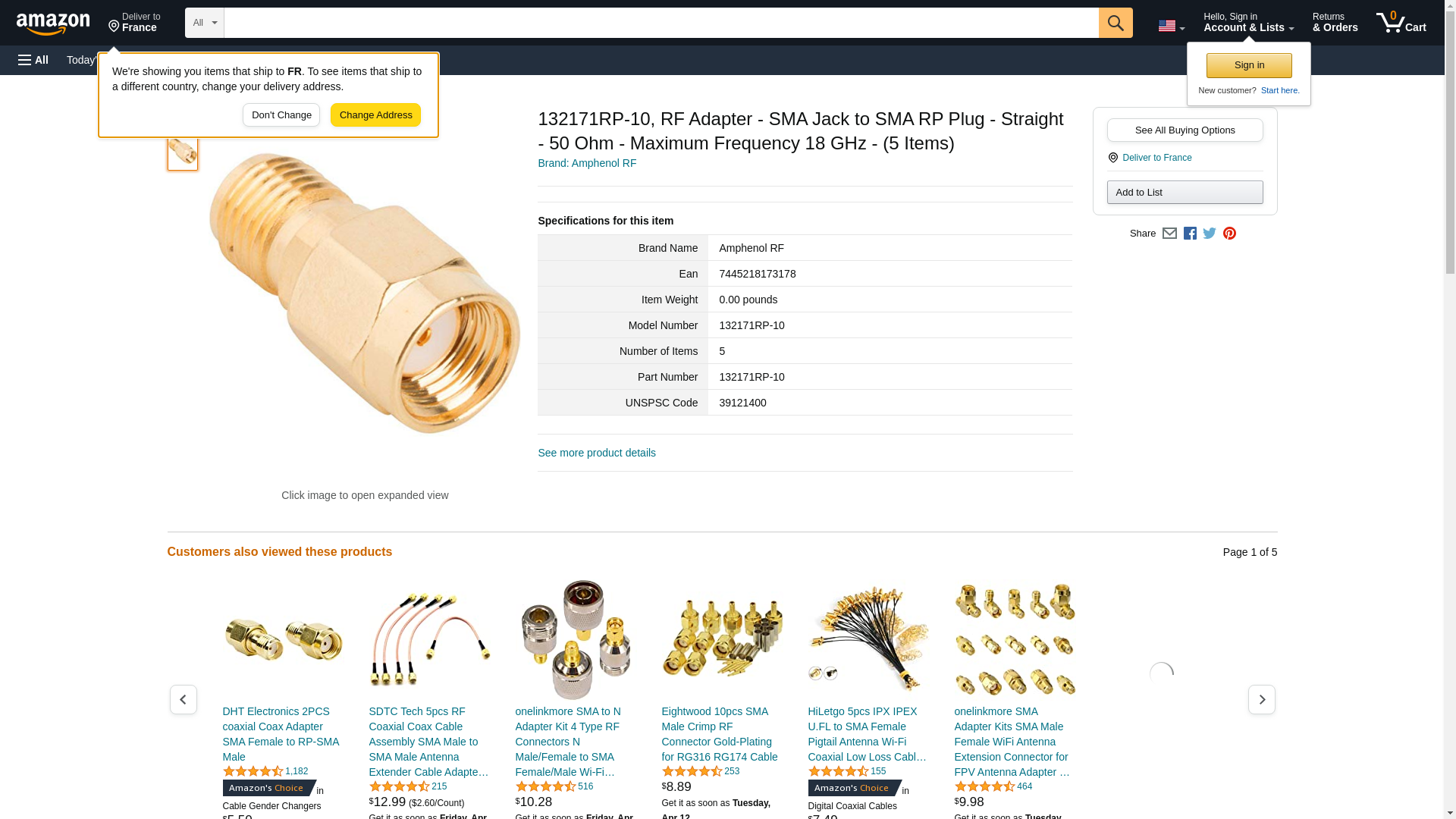 AMPHENOL CONNEX 132171RP-10 RF/COAXIAL ADAPTER, SMA JACK TO SMA RP PLUG (5 pieces)
