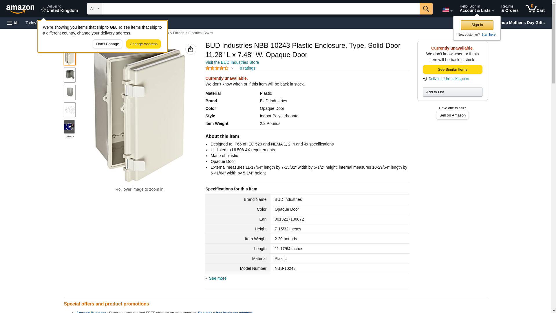 Bud Industries NBB-10243 Plastic Enclosure, Type, Solid Door