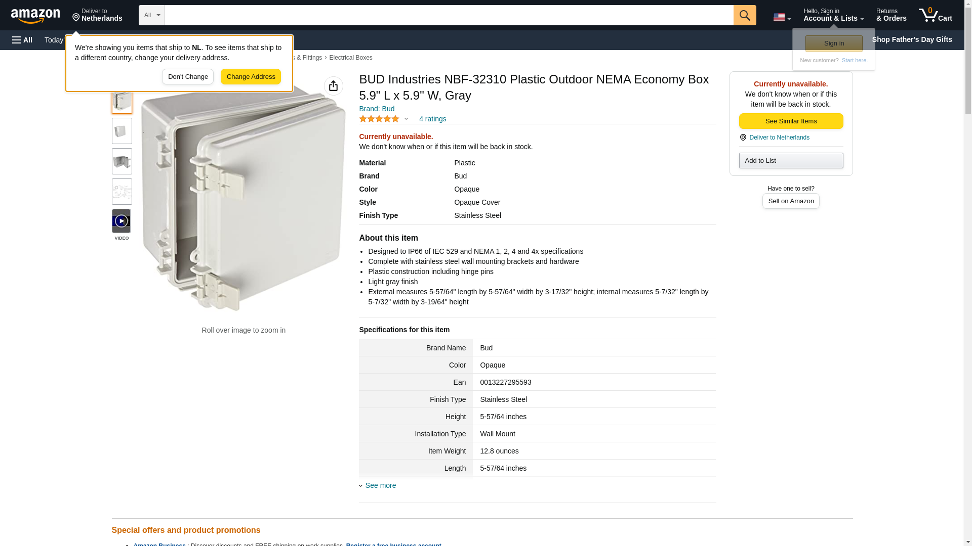 BUD Industries NBF-32310 Plastic Outdoor NEMA Poly PBT Blend, 5.91" L x 5.91" W x 3.54" D, White