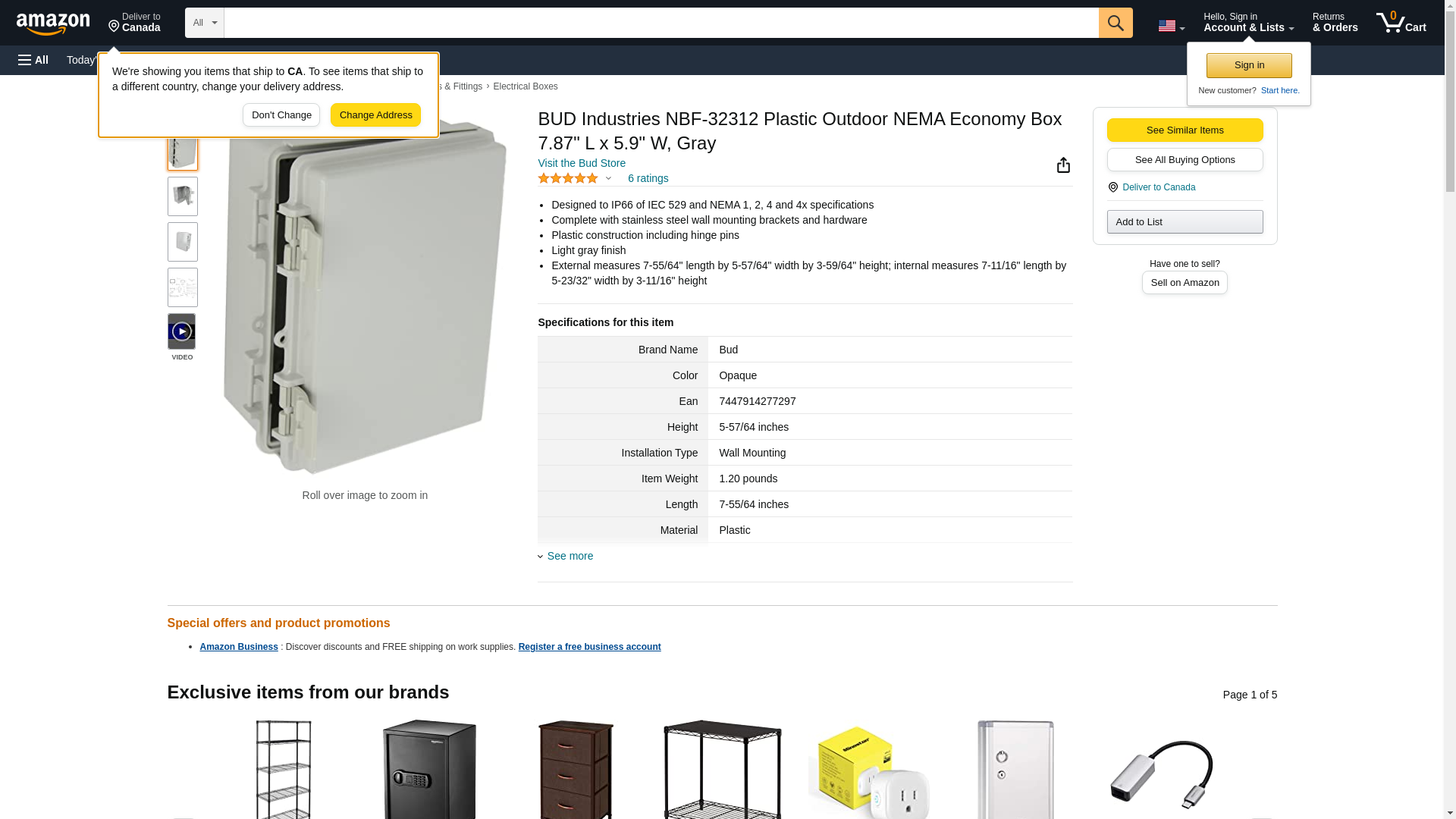 BUD Industries NBF-32312 Plastic Outdoor NEMA Poly PBT Blend, 8.33" L x 6.36" W x 3.94" D, White