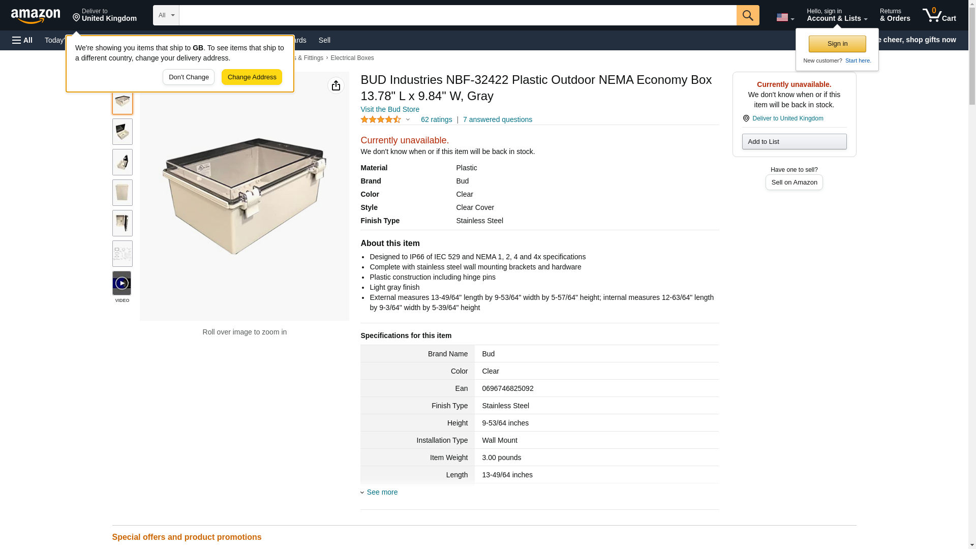 BUD Industries NBF-32422 Plastic Outdoor NEMA Economy Box 13.78" L x 9.84" W x 5.91" H, Gray