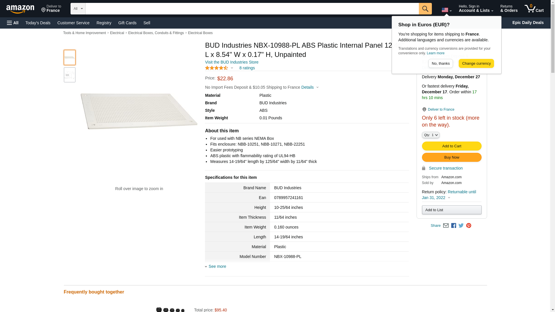 BUD Industries NBX-10988-PL ABS Plastic Internal Panel, 14-19/64 Length x 10-25/64 Width x 11/64 Thick, for NB Series NEMA Box by BUD Industries