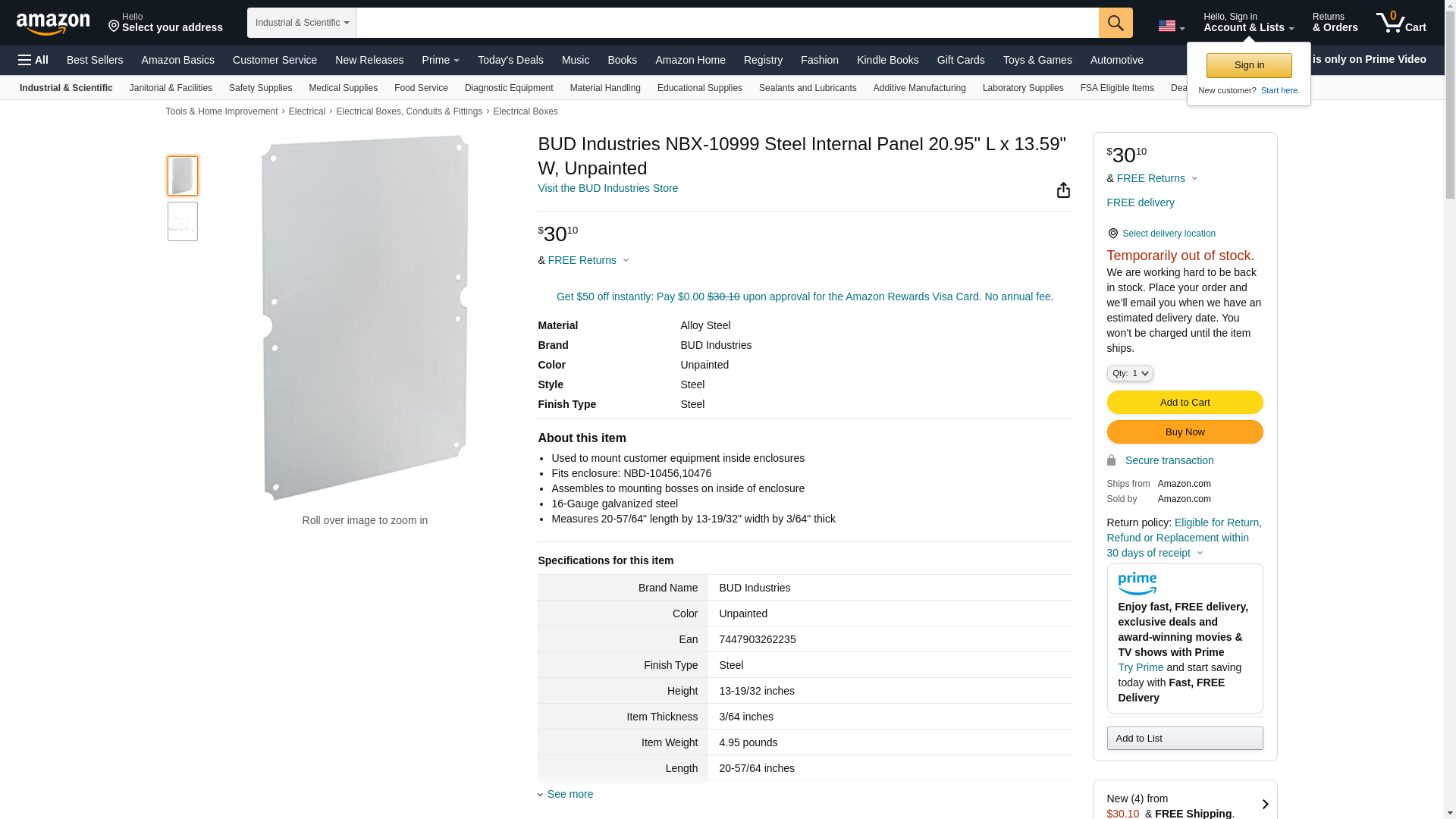 BUD Industries NBX-10999 Steel Internal Panel 20.95" L x 13.59" W, Unpainted
