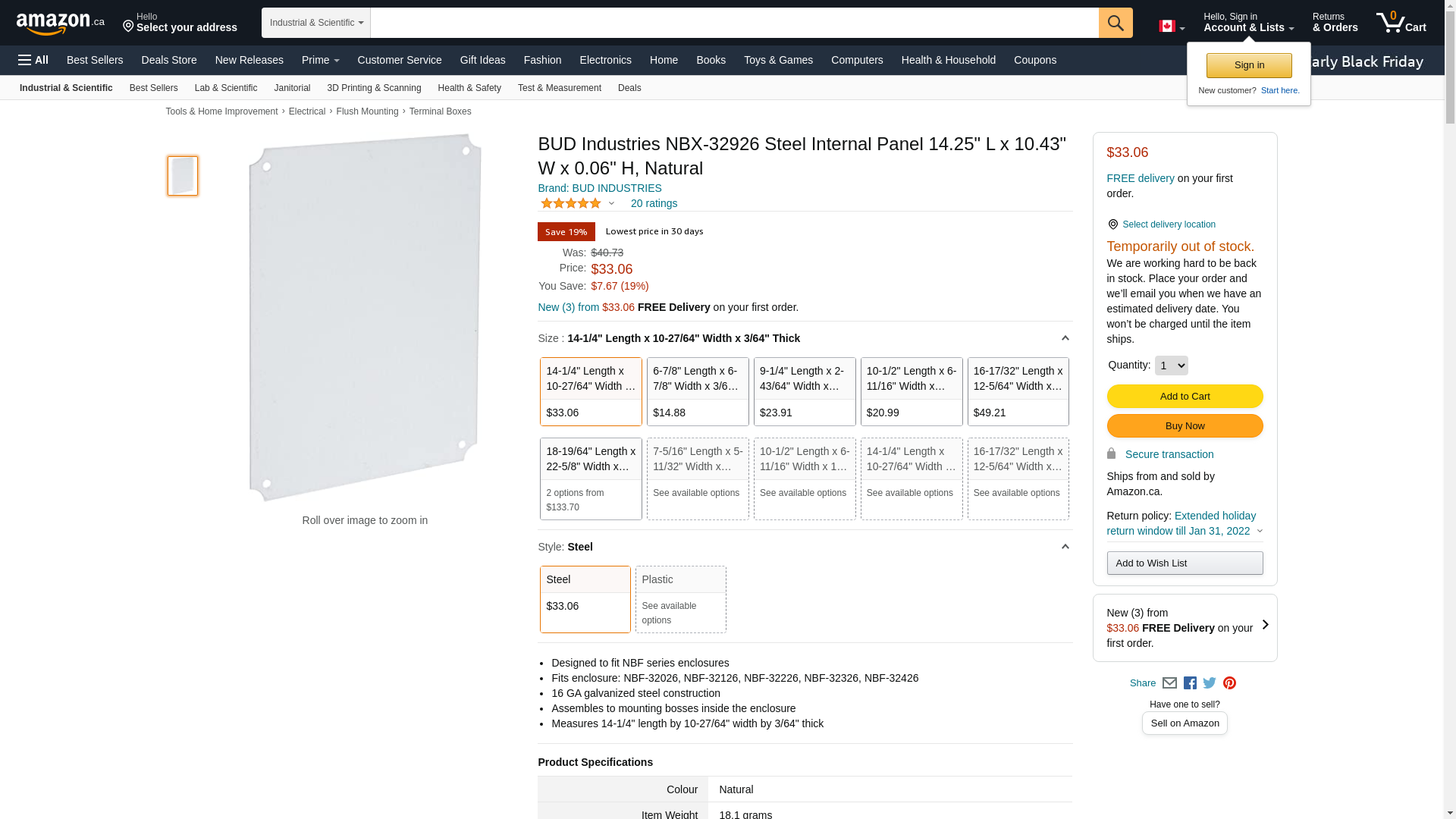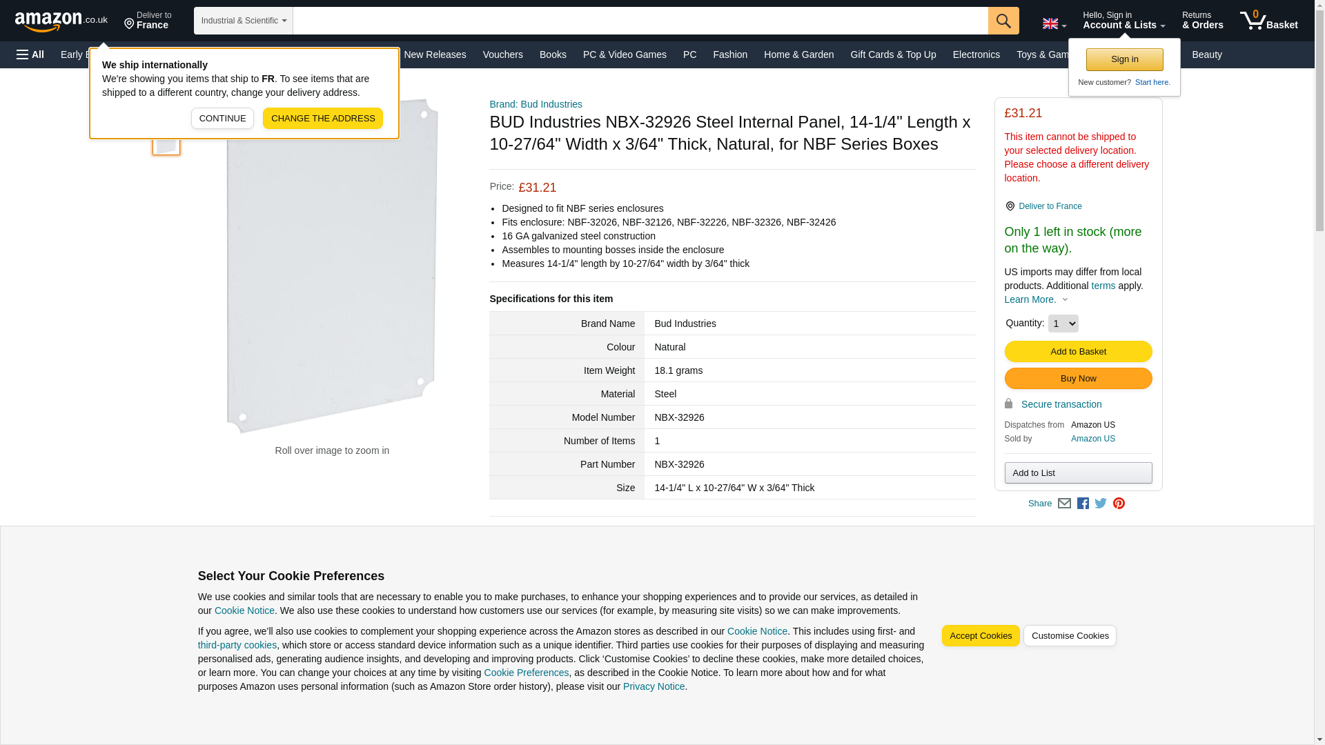 BUD Industries NBX-32926 Steel Internal Panel 14.25" L x 10.43" W x 0.06" H, Natural