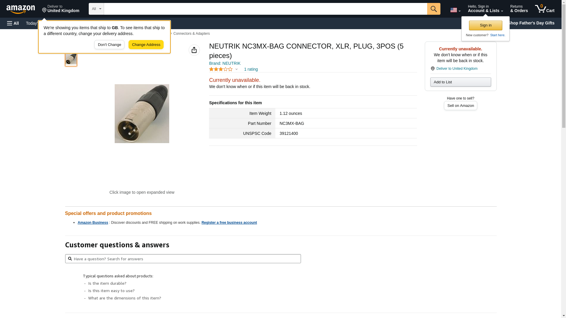 | Feature | Price For: Each Series: X Gender: Plug No. of Contacts: 3 Contact Termination: Solder Connector Mounting: Cable Connector Body Material: Metal Contact Plating: Silver Color: Black Connector Color: Black Connector Type: XLR RoHS Compliant: Yes |