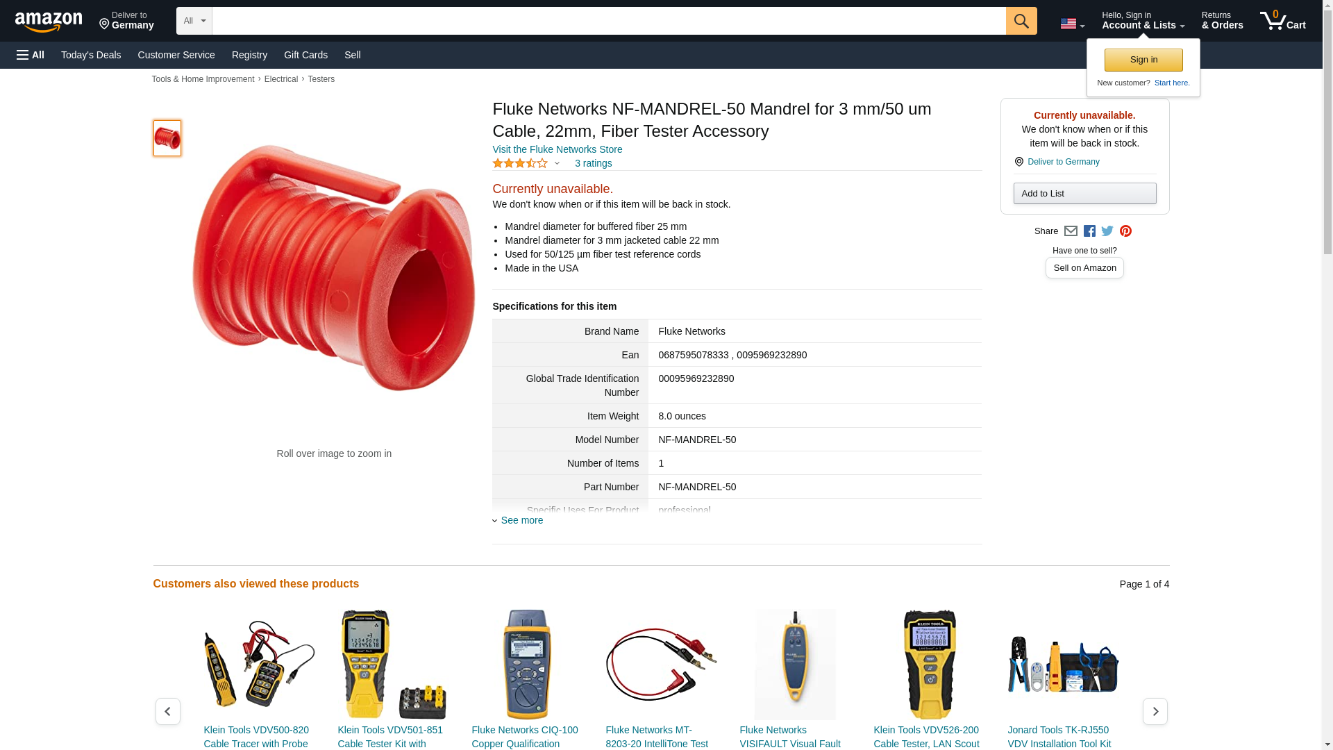 Fluke Networks NF-MANDREL-50 Mandrel for 3 mm/50 um Cable, 22mm, Fiber Tester Accessory