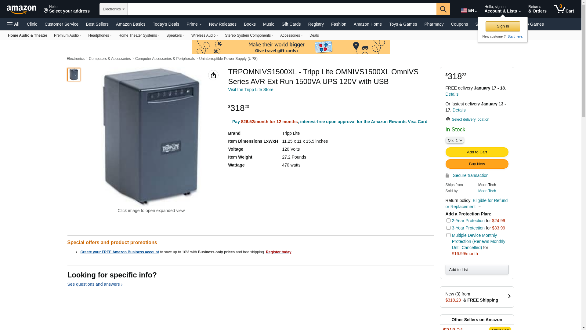 | TRP-OMNIVS1500XL | 1 | 1 | 1 @ $453.60 | ||