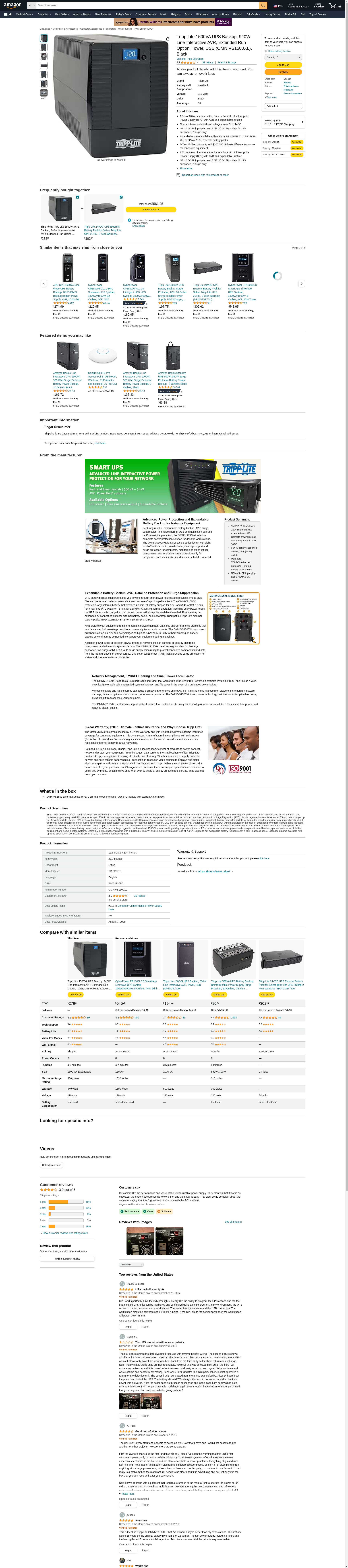 Buy Tripp Lite 1500VA UPS Backup, 940W Line-Interactive AVR, Extended Run Option, Tower, USB (OMNIVS1500XL), Black: Uninterruptible Power Supply (UPS) - Amazon.com ? FREE DELIVERY possible on eligible purchases