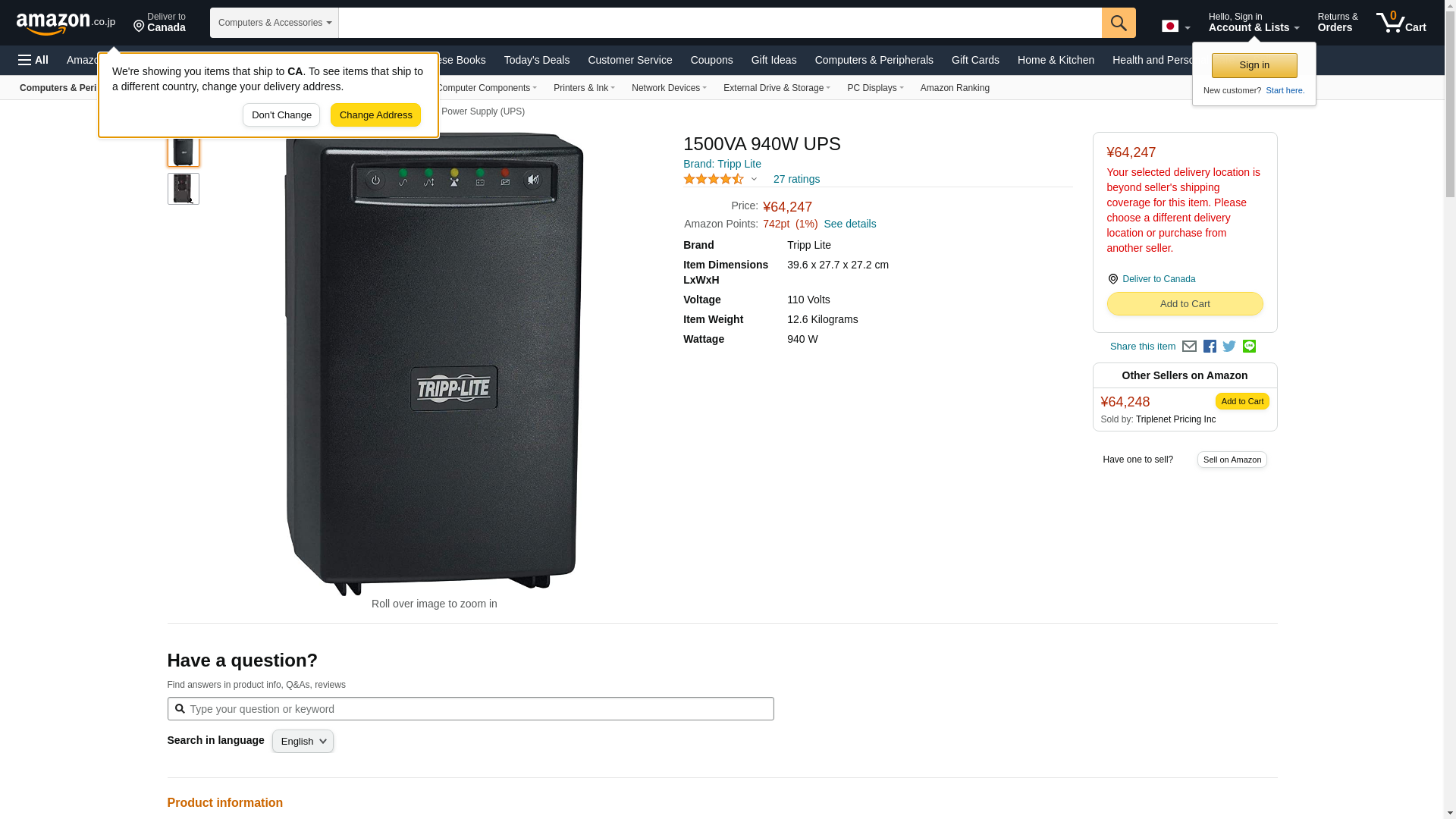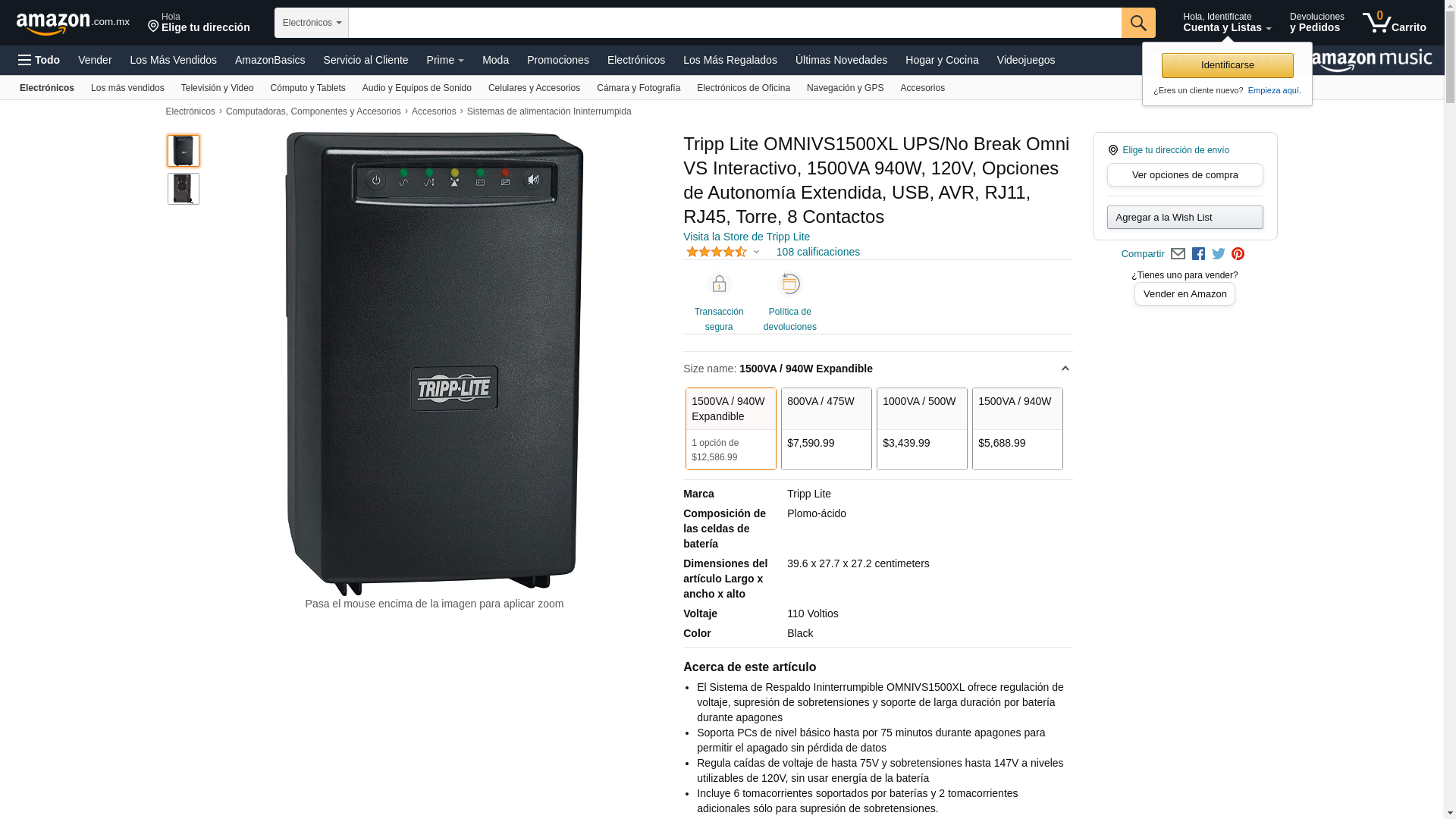| Part number | Tripp Lite-OMNIVS1500XL |