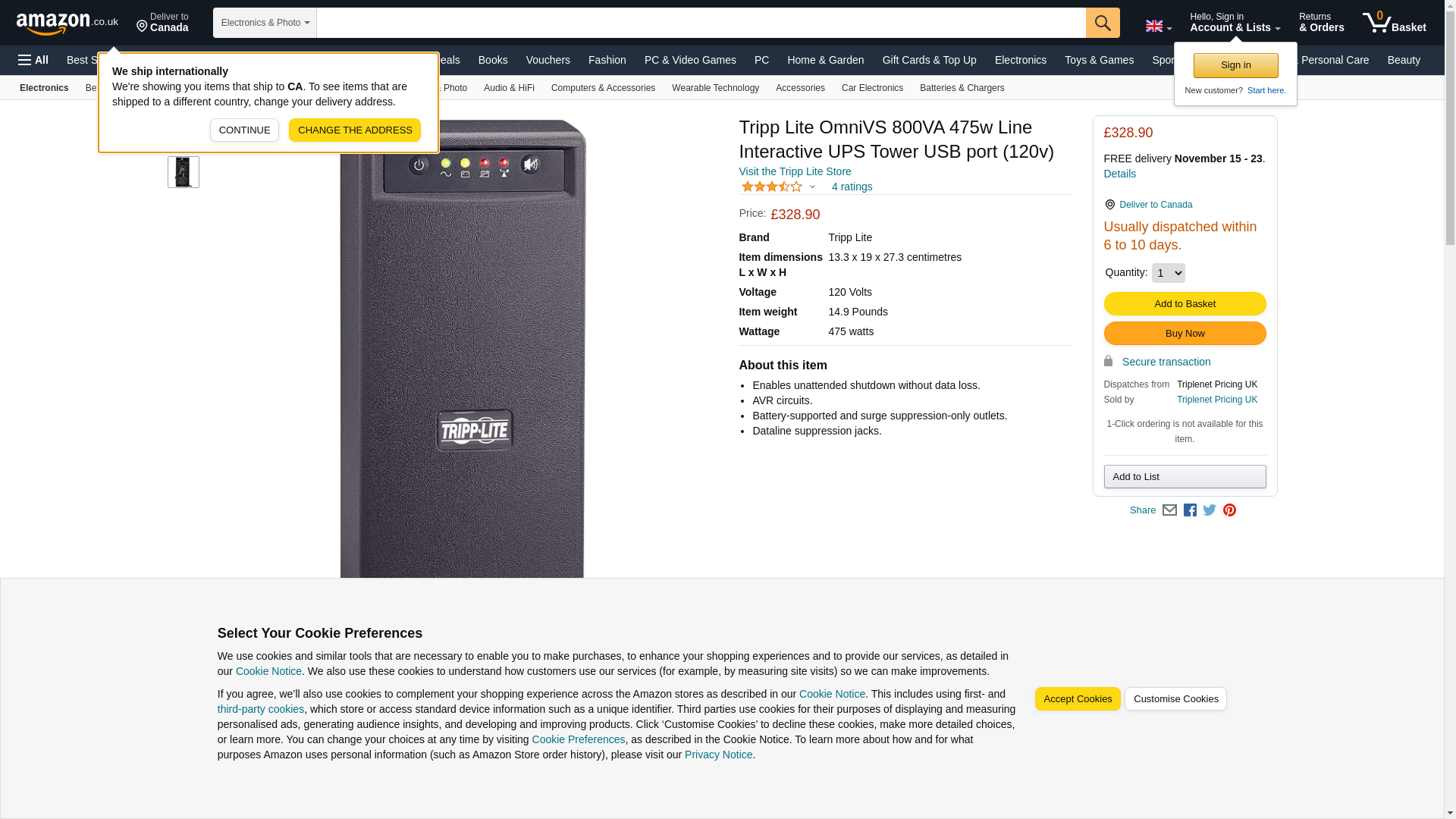 Tripp Lite Ups External Ac 120v 475w/800va Line-Interactive Interfaces 1 X USB 4 Pin USB Type B