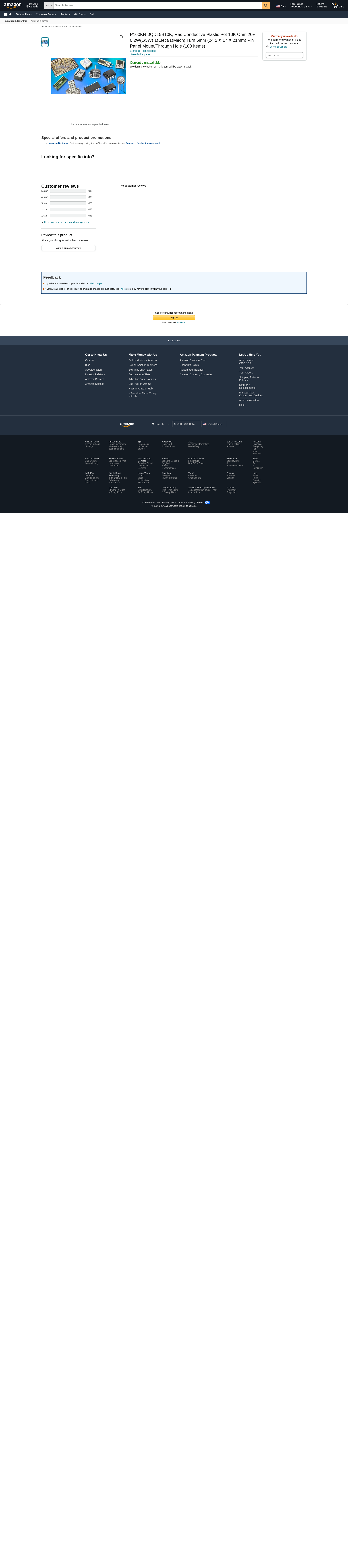 BI TECHNOLOGIES/TT ELECTRONICS P160KN-0QD15B10K POTENTIOMETER, ROTARY, 10KOHM, 16MM, 20%, 200mW (100 pieces)