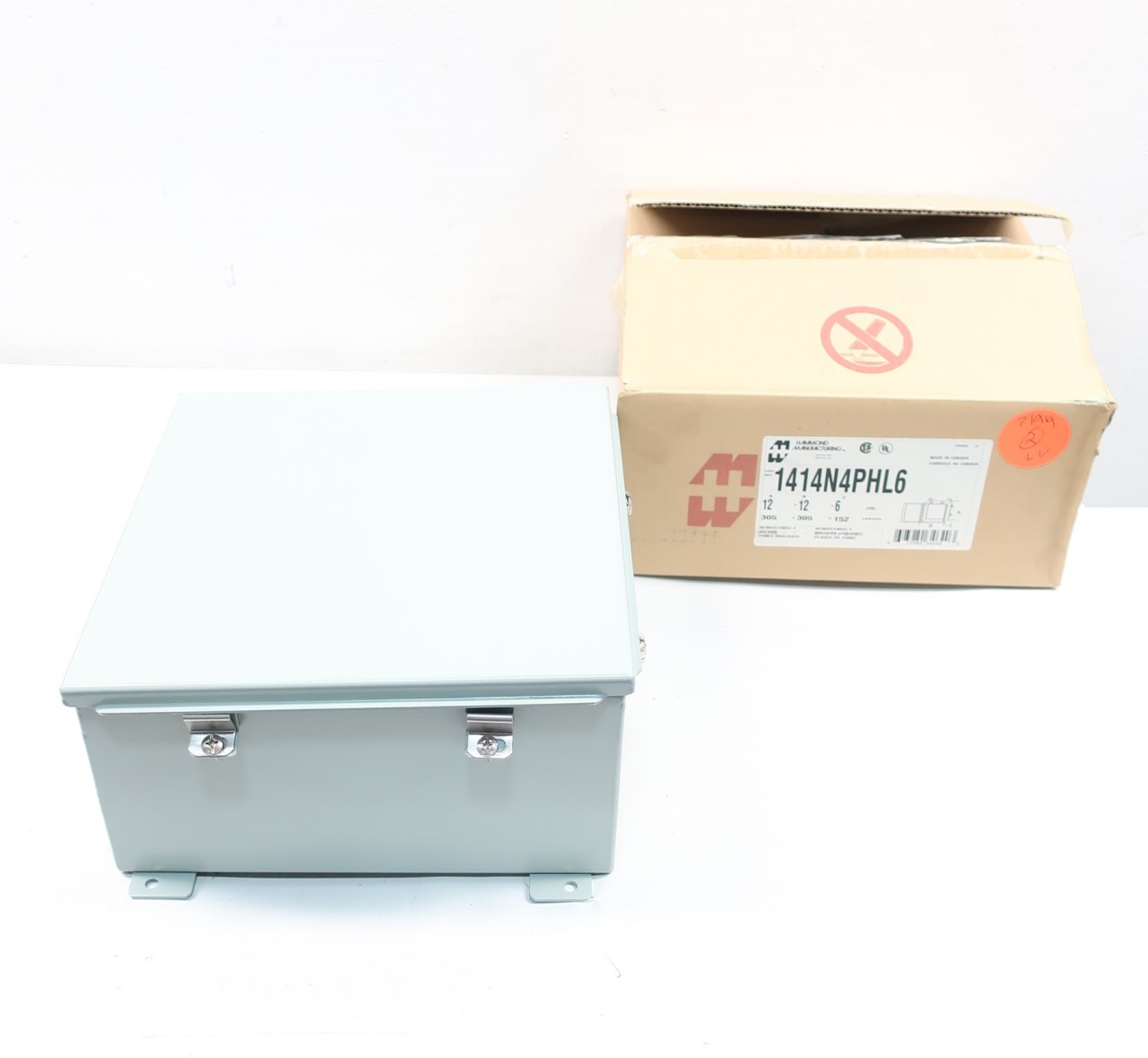 Hammond N4 J Box, Hinge Cover W/panel,12X12X6, Steel, Gray - 1414N4PHL6