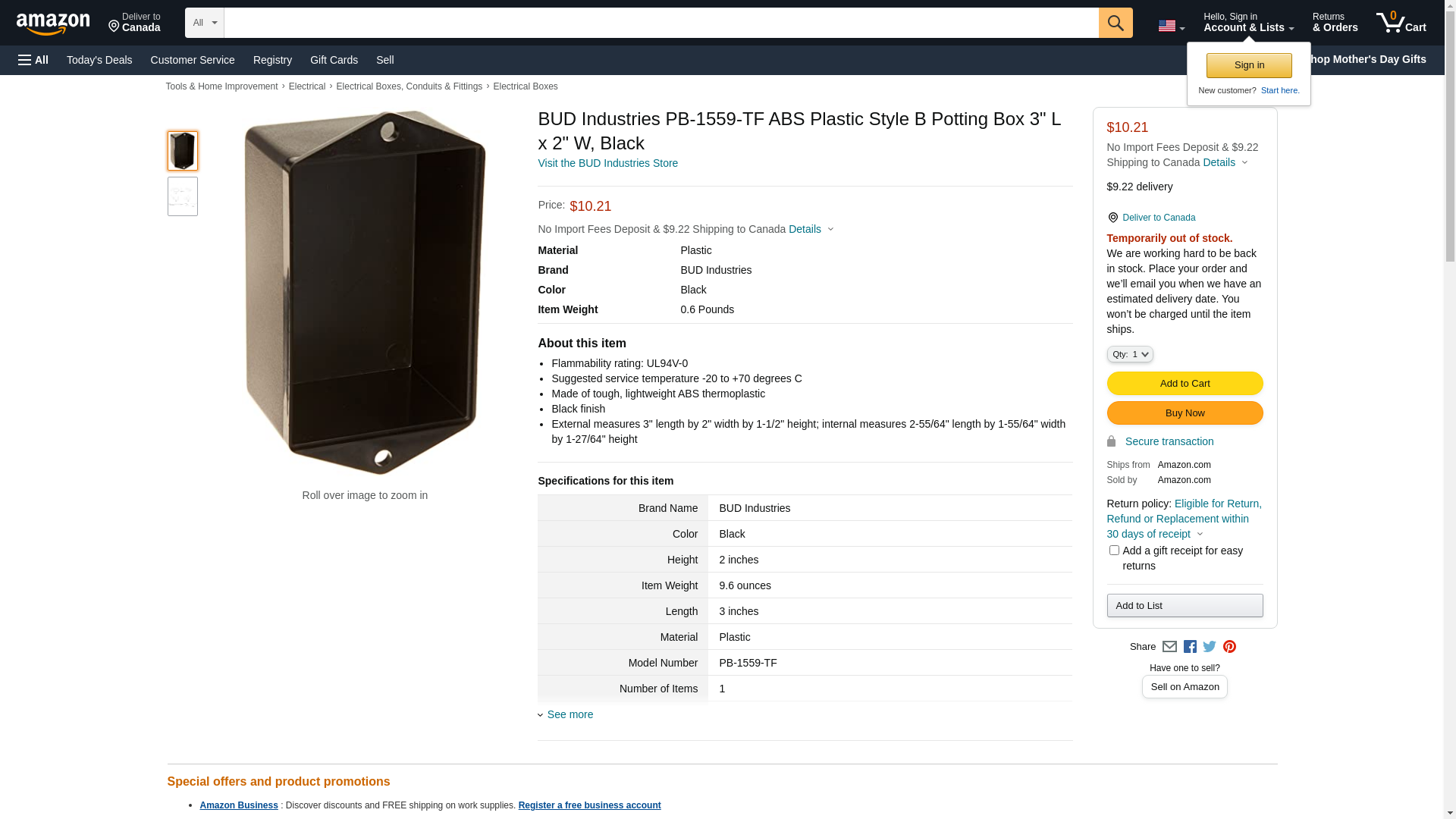 ![]() usmegastore.com | PB-1559-TF | 1 | -2 | 1 | 1 @ $27.93 |