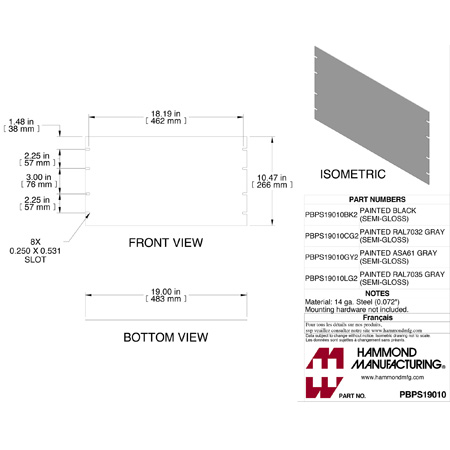 Hammond Rack Panel, 10.5Inx19In, Steel - PBPS19010BK2