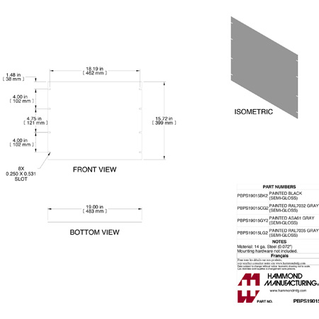 Hammond Rack Panel, 15.75Inx19In, Steel - PBPS19015BK2