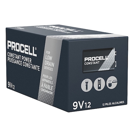 Duracell Procell Alkaline Batteries, 9V, 12/Box