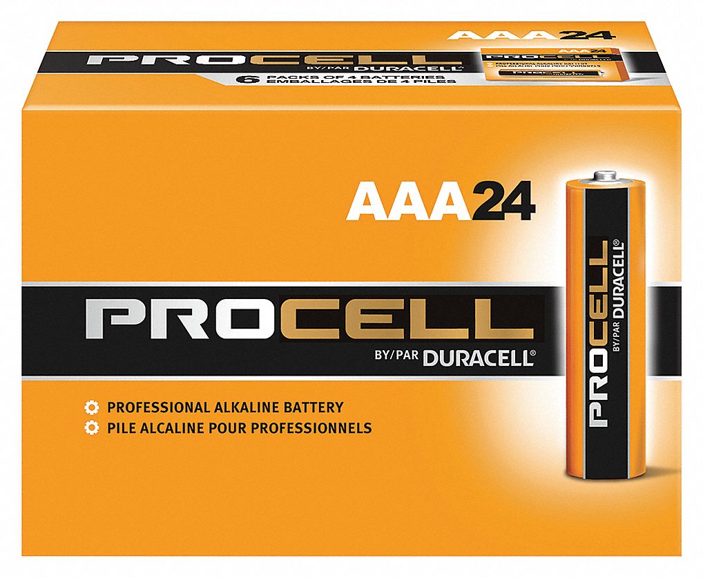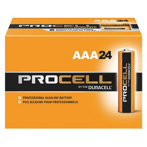 Sold as 3 UNITS at $14.41 per unit. (1 unit = Bx/24.) Duracell Procell. "AAA" size. 1.5 volt. Commercial/industrial bid battery. Primary uses: pagers, flashlights, and TV remotes. Not for retail sale. Bulk. Manufacturer number: PC2400BKD. SKU #: 3165677. Country of origin: (TBA). Distributed by Duracell Pro Div of P & G.