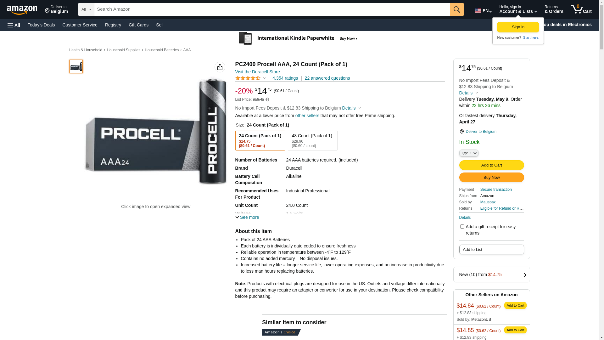 PC2400 Procell AAA, 24 Count (Pack of 1)