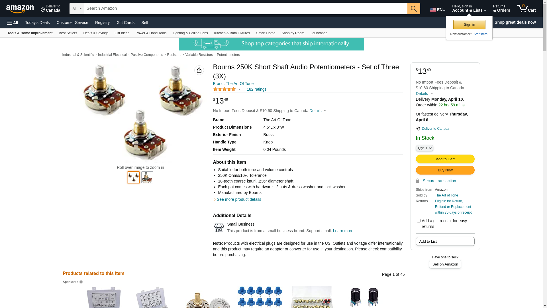 Set of 3X Bourns 250K SHORT split shaft audio taper potentiometers low friction rotation. Bourns are a nice quality alternative to CTS pots. These audio taper pots are suitable for both tone and volume controls. Some of the features of this pot are: 250K Ohms/10% Tolerance Audio Taper Low Friction Rotation Solid brass 3/8" (short shaft) bushing Split, 18-tooth coarse knurl, .236" diameter shaft Each pot comes with hardware - 2 nuts & dress washer Requires 3/8" diameter mounting hole Note:1. This pot is not suitable for use with import guitars.2. This pot has a 3/8" bushing. When installing on a Strat or other through pickguard mount use the second nut as a spacer under the pickguard. This will ensure that your knobs are seated close to the body, or will allow the pot to match pots using a 1/4" bushing.