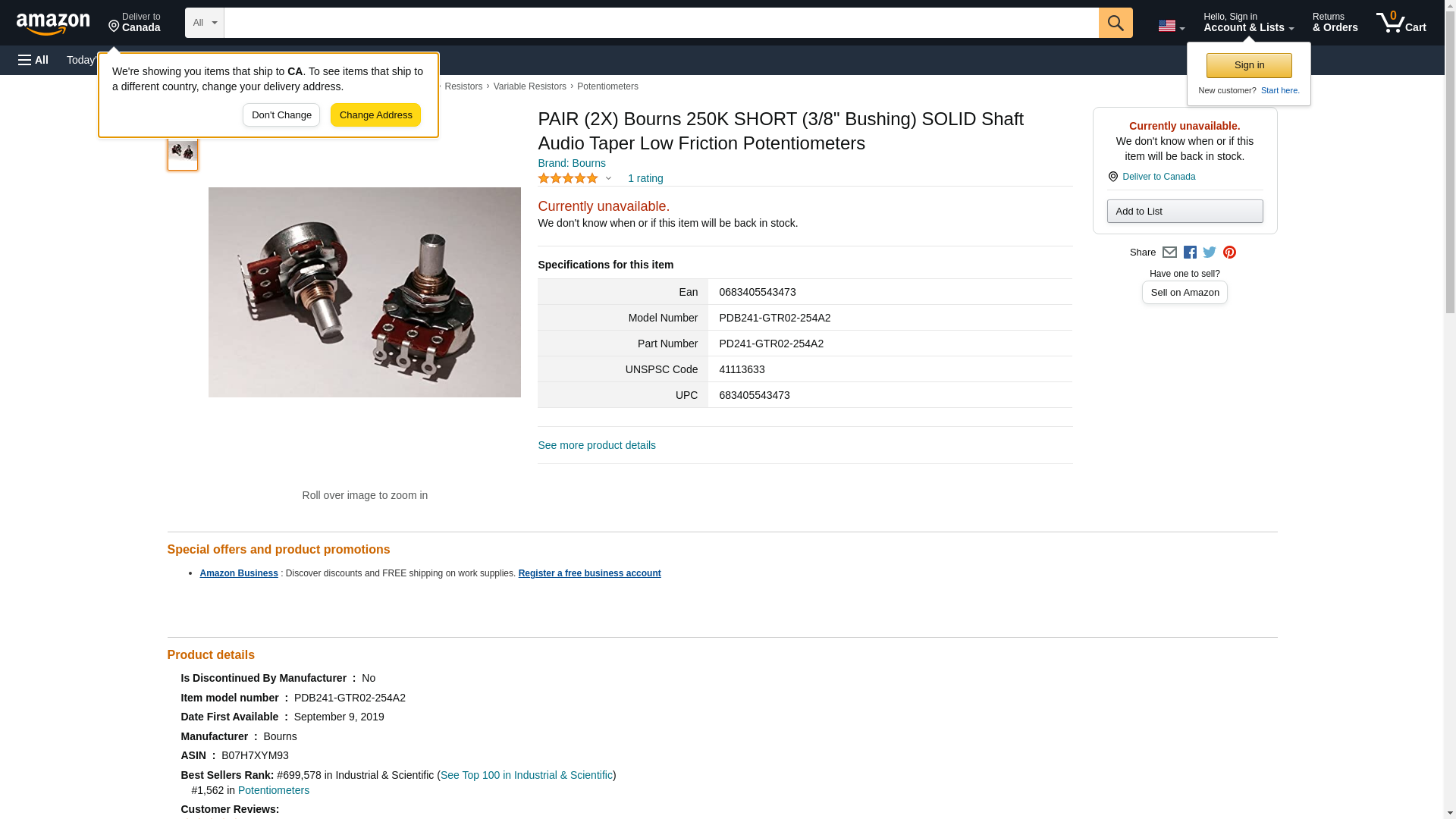 | Feature | Manufacturer: Bourns Product Category: Panel Mount Potentiometers RoHS: Product: Musical Syst Potentiometer Mounting Style: Panel Taper: Audio Number of Turns: 1 Resistance: 250 kOhms Power Rating: 250 mW (1/4 W) Voltage Rating: 250 V Element Type: Carbon Shaft Type: Round / Plain Termination Style: Solder Lug Tolerance: 20 % Brand: Bourns |