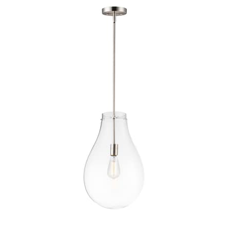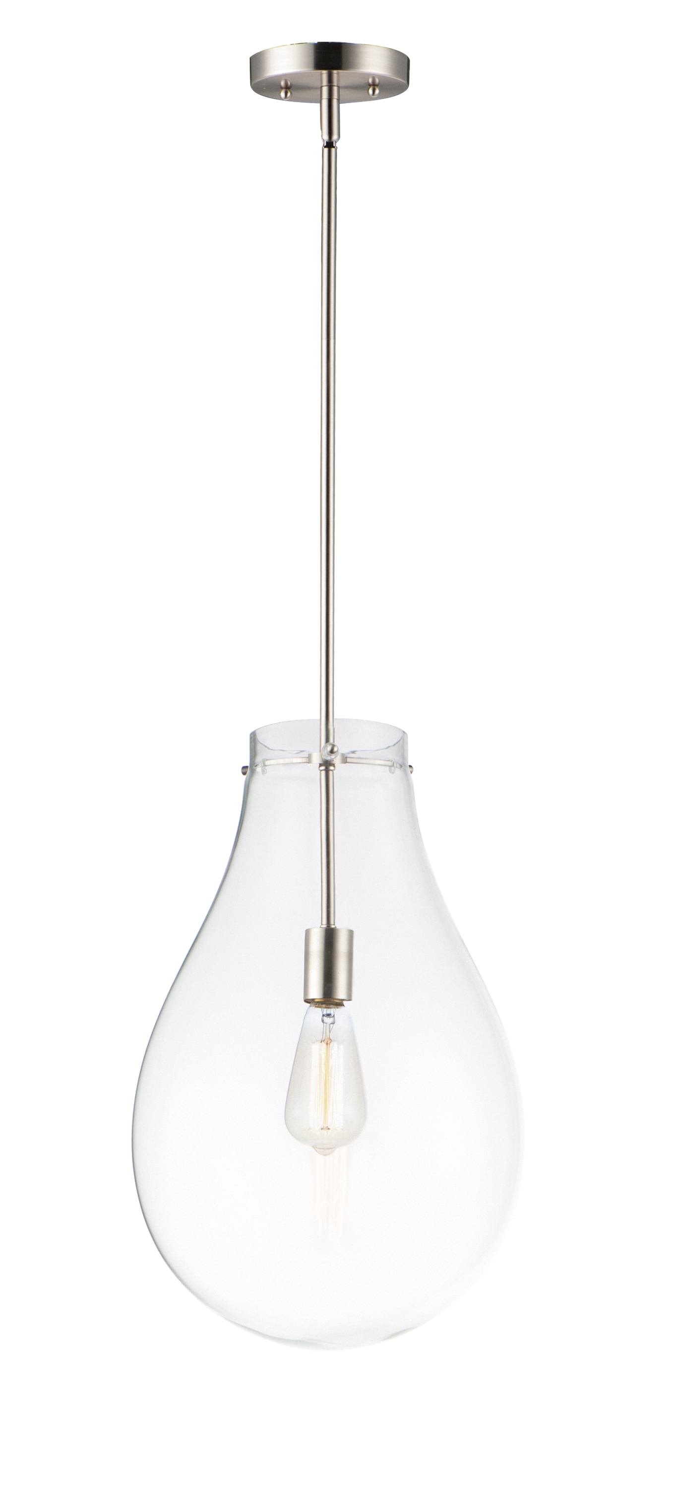 Maxim 10162CLSN Gourd Large-Scale Hand Crafted Clear Glass Pear Shape Pendant Ceiling Light, 1-Light 60 Watt, 19" H x 12" W, Satin Nickel
