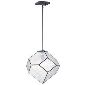 Maxim 11550CBBK Brooklyn Modern Classic Bark Glass Tetrahedron Mini Pendant, 1-Light 60 Watt, 15"H x 15"W, Black