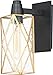 A black and burnished brass finish make up Maxim's striking Norfolk Outdoor Wall Light. Suitable for outdoor and indoor spaces, it has clear seedy glass and is constructed of triangles. Made from brass, aluminum, and glass, it features a rectangular wall mount and is also dimmable.