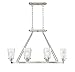 If you want a fresh, elegant lighting look in your home, the Savoy House Vaughan 6-light linear chandelier is the perfect choice. Its sleek design showcases tall fluted shades of clear water glass that are held snugly in place with clasps and screws. The satin nickel finish works beautifully with many different colors of hardware and this linear chandelier is perfect for use over a kitchen island or long dining table. This fixture is 19 Inch wide, 38 Inch long and 23.25 Inch tall. Uses 6 standard size bulbs of up to 60 watts each (not included). Dining Room/Living Room/Family Room/Great Room/Bedroom/Kitchen/Foyer/Entryway/Stairway/Bathroom/Office/Billiard Room/Media Room / Assembly Required: Yes / Canopy Included: Yes / Canopy Diameter: 4.60 / Dimable: Yes. Assembly Required: Yes / Canopy Included: Yes / Canopy Diameter: 4.60 / Sloped Ceiling Adaptable: Yes / Chain Length: 120.00 / Dimable: Yes / Shade Included: Yes / Shade Dimensions: 4.75 x 4.75 x 6.5.