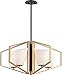 A creative design of oblique squares which support cones of angle-cut cased glass to match the frame. The combination of Black with Gold creates a dramatic effect which is softened by the subtleness of the Satin White glass. Canopy Included: Yes / Canopy Diameter: 6.00 / Sloped Ceiling Adaptable: Yes / Dimable: Yes / Shade Included: Yes / Shade Dimensions: 8.00.