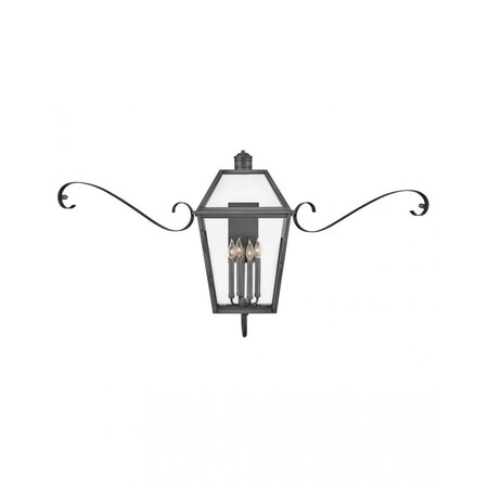 Hinkley Nouvelle Collection Four Light Outdoor Large Wall Lantern with Scroll, Blackened Brass/Black