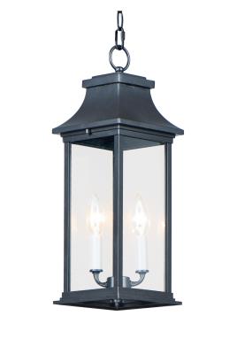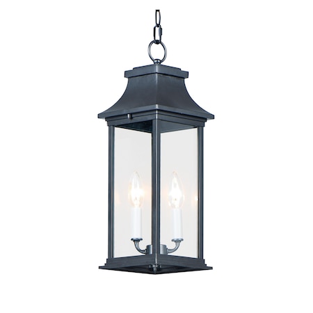 Maxim Lighting-30029CLBK-Collection: Vicksburg, Material: Aluminum, Finish Color: Black, Width: 6.75", Height: 18.5", Length: 6.75", Chain Length: 72", Lamping Type: Incandescent, Number Of Bulbs: 2, Wattage: 40 Watts, Dimmable: Yes, Moisture Rating: Wet Rated, Desc: Inspired by classic coach gas lanterns, the Vicksburg collection features die-cast aluminum construction finished in Black with Clear glass. The candle sleeves are done in a contrasting off-white finish to add dimension to the lantern. Available in numerous sizes and configurations including a handsome pocket wall. Canopy Included: Yes / Canopy Diameter: 5.00 / Sloped Ceiling Adaptable: Yes / Chain Length: 72.00 / Dimable: Yes / Shade Included: Yes. ,-Vicksburg-2 Light Outdoor Hanging Lantern-6.75 Inches wide by 18.5 inches high