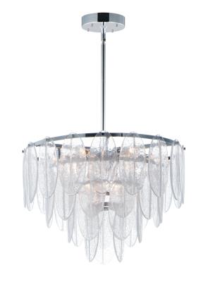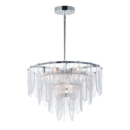 Hand-formed glass petal accents are suspended from a tiered polished chrome frame in Maxim Lighting's standout nine-light Glacier Chandelier. It features transparent glass that softly diffuses light for a clean, classic finish. This chandelier is made from steel and glass, has white accents, and is also dimmable.