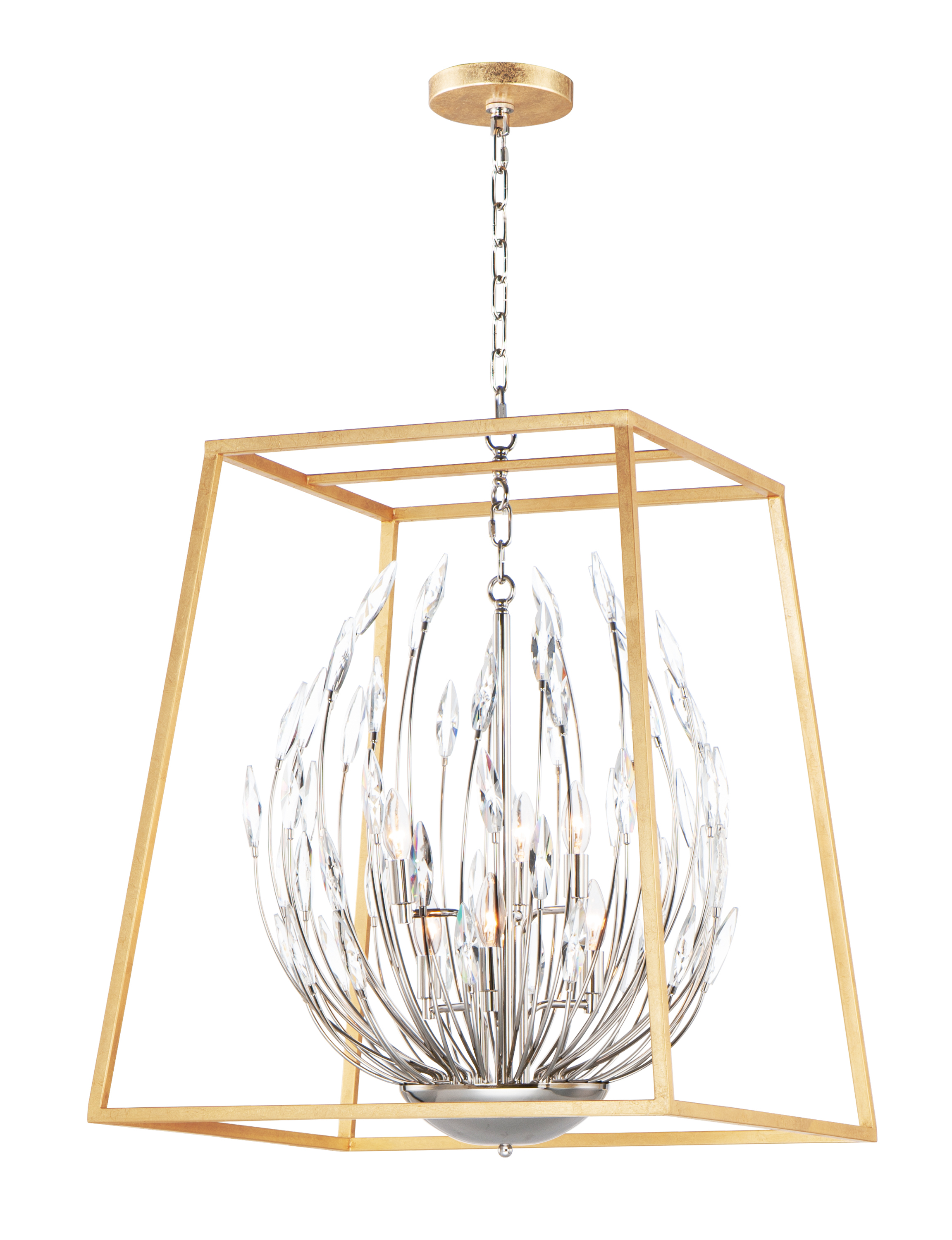 Maxim Lighting 32406BCPNGL Bouquet-6 Light Pendant-24.5 Inches Wide by 29.5 inches high, Polished Nickel/Gold Leaf Finish with Beveled Crystal Glass
