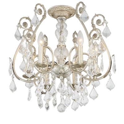 Regis 6 Light Clear Hand Cut Crystal Silver Ceiling Mount